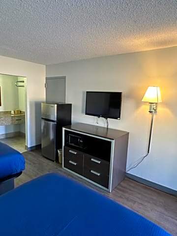 This room features a cable TV and a clock radio. A microwave and refrigerator are also included.